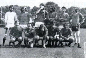 Voetbalteam van de Elektronen Versneller Amsterdam (EVA) op de IKO sportdag 1971.