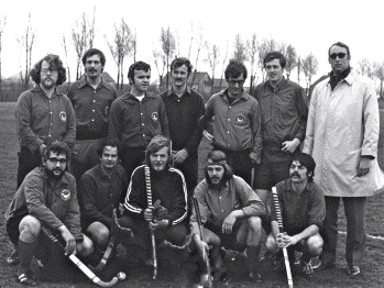 V.l.n.r. staand: Hans Gompelman??, Gijsbert Box, Ton Ellermeijer, Paul Wielinga, Piet Hans Bruinsma, Jep de Bie, zittend: NN??, Henk Schwebke, Harold Blauw, Kees Bakker, Louk Lapikás Foto: Amsterdam, 1971. |